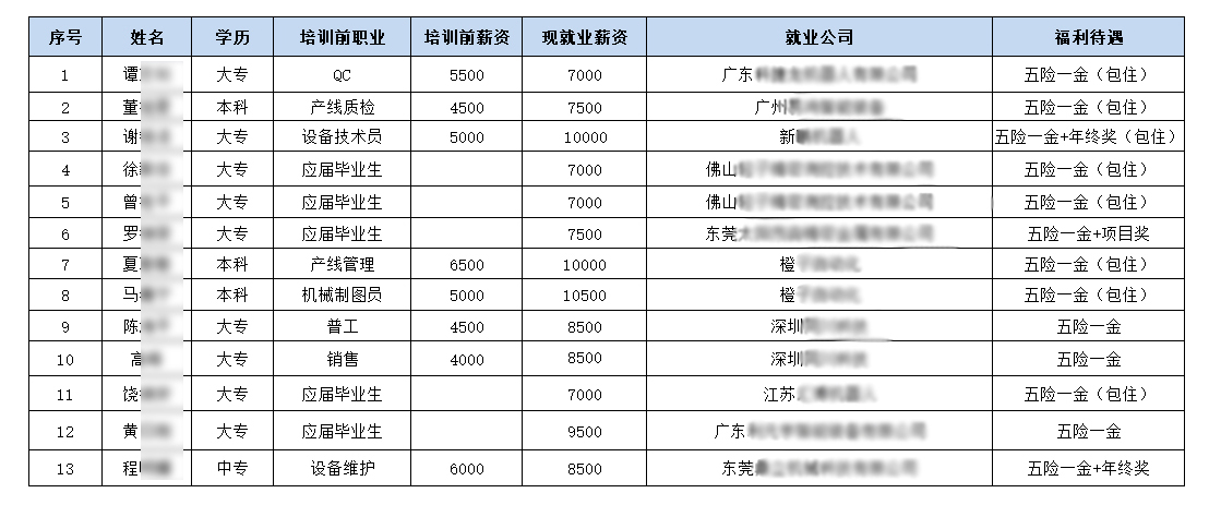 犀靈機器人培訓(xùn)班第7期共招生13名,現(xiàn)就來平均薪金為8346元
