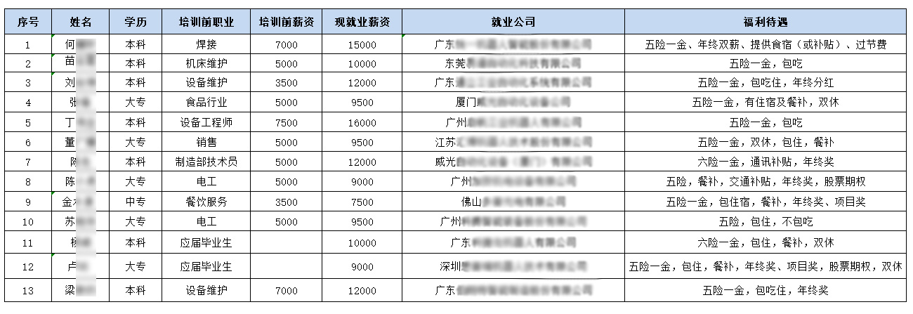 第11期學(xué)員并不是參加工作時(shí)間最長的,但為何能超過第1期學(xué)員,小編分析可能因?yàn)楸酒趯W(xué)員學(xué)歷本科的較多,起薪較高,本期學(xué)員共7名本科學(xué)員,占比超過一半。另外由于犀靈機(jī)器人