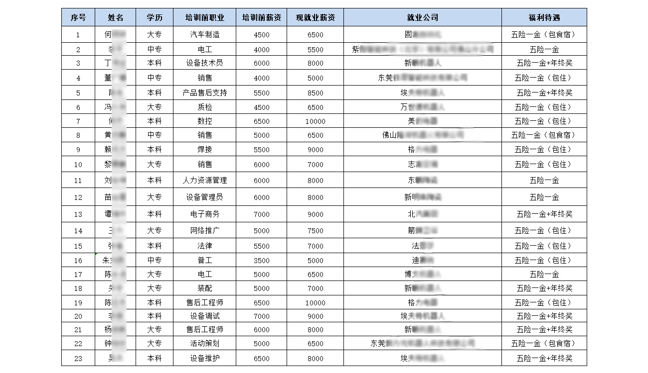也是學(xué)員最多的一期,達(dá)到23人,雖然平均收入暫時較低,讓人振奮的是他們居然100%還在從事著與工業(yè)機(jī)器人相關(guān)的工作。