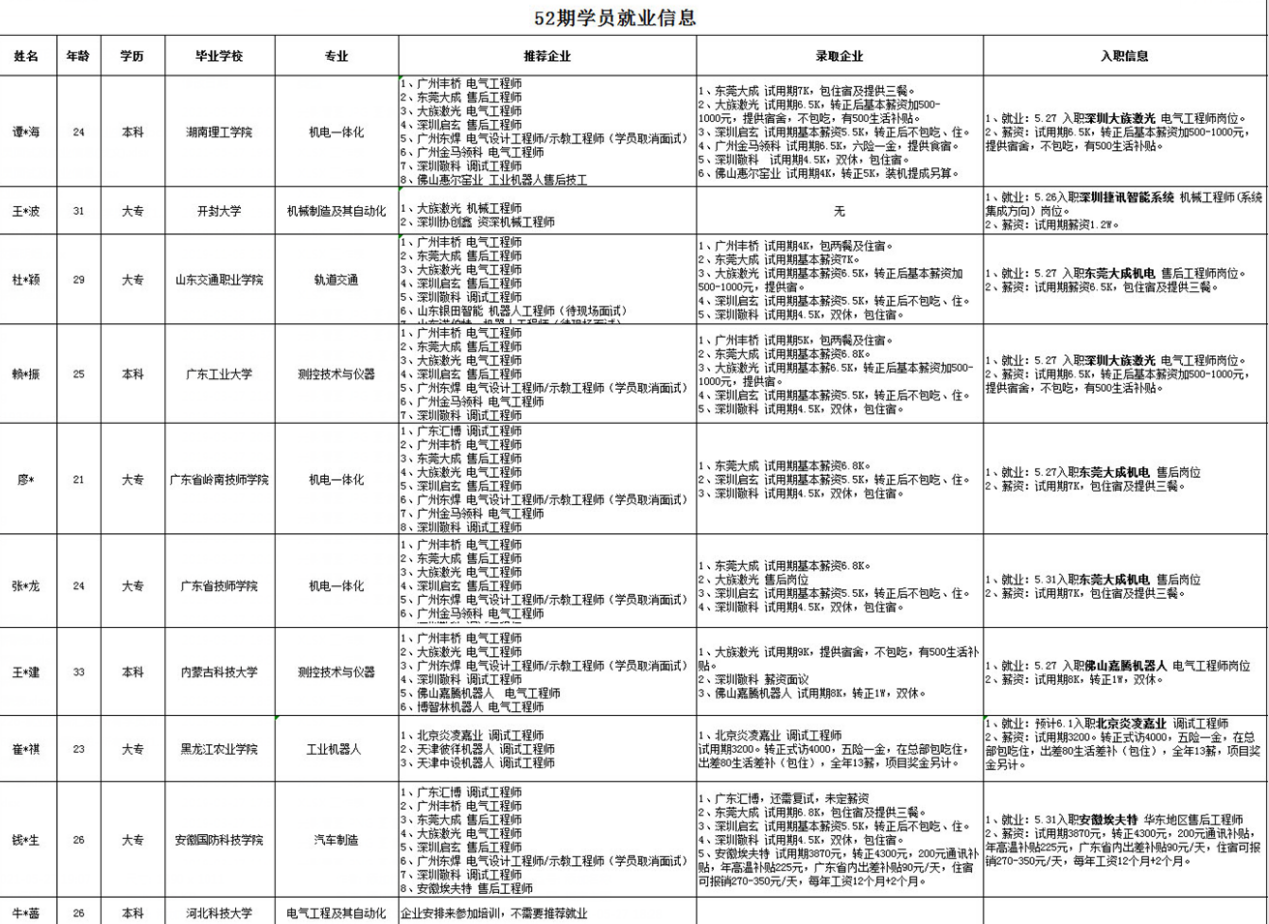 這個(gè)月是爆發(fā)的一個(gè)月,犀靈機(jī)器人工業(yè)機(jī)器人系統(tǒng)集成研發(fā)班52期的10名學(xué)員成為了人才市場上的香餑餑,多家企業(yè)展開了激烈的人才爭奪戰(zhàn),下面小犀就帶大家一起領(lǐng)略一下52期學(xué)員的就業(yè)風(fēng)采。