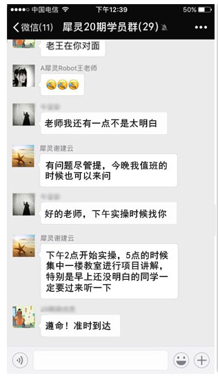 師傅領進門,修行在自己,犀靈機器人給我們提供一個很好的學習模式,好的學習氛圍,還有專職的班主任督促我們的學習,并及時了解我們學習上的困難,讓我有一種重回校園的感覺。