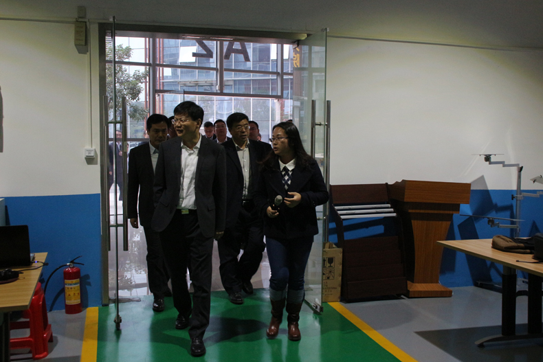遼寧省營(yíng)口市市長(zhǎng)余功斌在佛山副市長(zhǎng)喬羽、南海副區(qū)長(zhǎng)陳紹文參觀考察了犀靈工業(yè)機(jī)器人培訓(xùn)中心