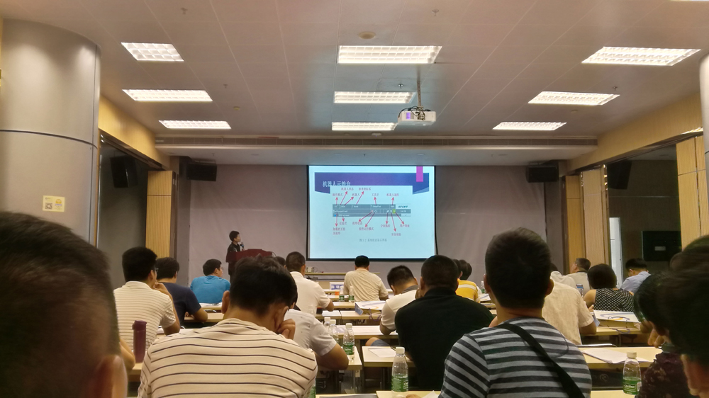 8月25日,新鵬機(jī)器人資深工程師柯明波為教師們分析自動(dòng)化流水線技術(shù)及在實(shí)際項(xiàng)目進(jìn)程中的關(guān)鍵點(diǎn)與難點(diǎn),并現(xiàn)場(chǎng)解答了教師們的疑惑。