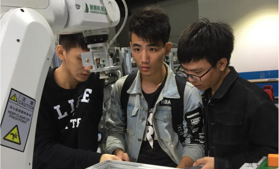 同學(xué)們在認(rèn)真學(xué)習(xí)工業(yè)機(jī)器人操作