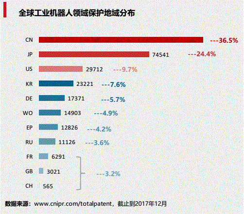 全球工業(yè)機器人產(chǎn)業(yè)專利申請區(qū)域分布