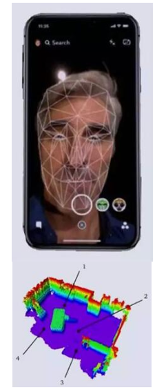 ? 圖4:人臉識別(上圖)和視覺同步定位和映射(下圖)是3D圖像傳感所實(shí)現(xiàn)的眾多功能中的兩個。