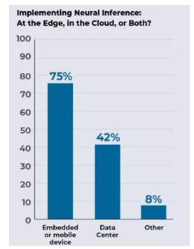 ? 圖9:多數(shù)受訪者至少在邊緣設(shè)備上做了一些神經(jīng)網(wǎng)絡(luò)推理,近一半的受訪者也在云中進(jìn)行部分或全部推理。(來源:EVA)