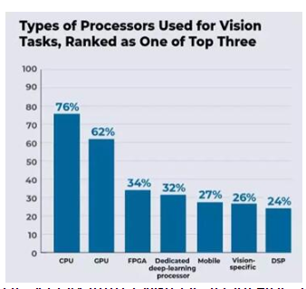 EVA最近在開發(fā)者調(diào)查中收集的數(shù)據(jù)顯示,深度學(xué)習(xí)專用處理器的采用顯著增加;近1/3的受訪者表示現(xiàn)在正在使用深度學(xué)習(xí)專用處理器,而兩年前這一比例只有19%(見圖7,由于調(diào)查對象要求標(biāo)記所有他們的項目使用的處理器,所以總數(shù)超過100%)。這種趨勢尤其令人震驚,因為在幾年前,深度學(xué)習(xí)專用處理器還根本不存在。同樣需要注意的是,其他處理架構(gòu)通常用于各種視覺任務(wù)。