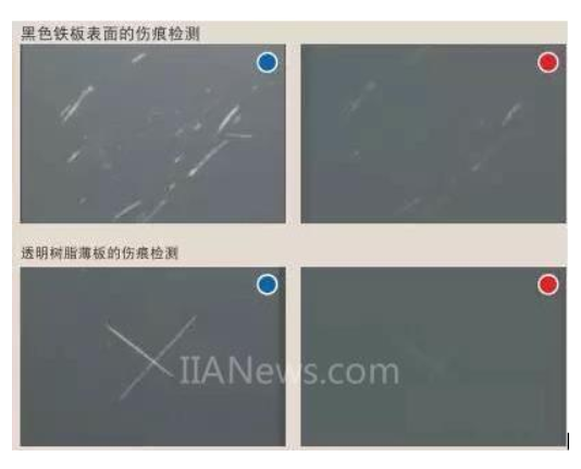 同時(shí),由光的波粒二象性可知,短波長(zhǎng)的藍(lán)色光粒子性更強(qiáng),實(shí)際應(yīng)用中,更適合捕捉產(chǎn)品微小的瑕疵劃傷。而紅色光更適合需要穿透表面薄膜檢測(cè)內(nèi)部的應(yīng)用。