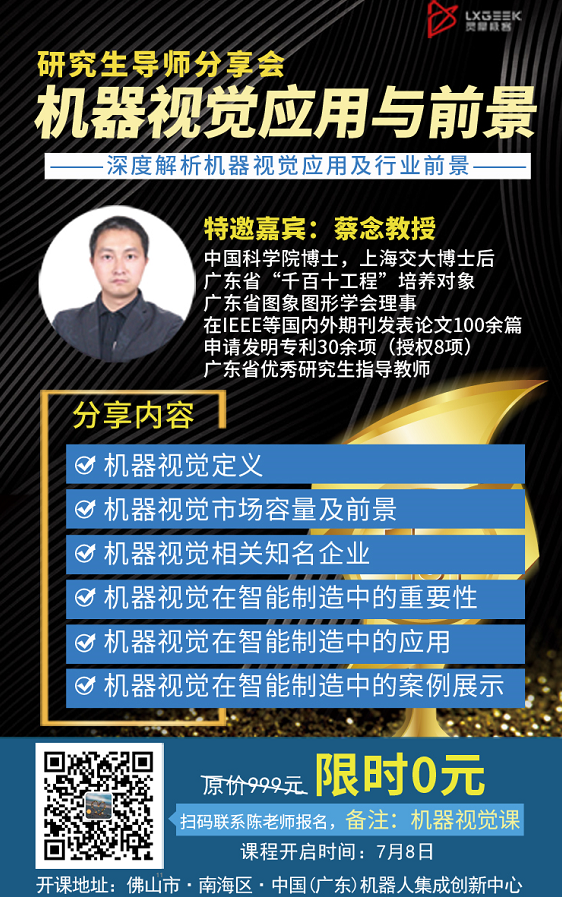 為更好的推動機器視覺技術(shù)的發(fā)展,為我國制造行業(yè)培養(yǎng)更多的機器視覺人才,犀靈機器人特邀中國科學(xué)院博士,上海交通大學(xué)博士后,廣工大碩士生導(dǎo)師蔡念教授蒞臨犀靈機器人培訓(xùn)基地為廣在的機器視覺愛好者帶來機器視覺分享會及技術(shù)沙龍。