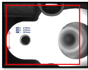 超高的對比度可以輕易的通過Blob視覺工具將缺陷提取出來,并對相關尺寸進行測量。