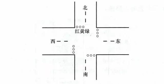 系統(tǒng)要求用兩個按鈕來控制交通信號燈工作,交通信號燈排列如下圖所示。
