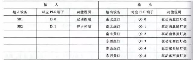 交通信號燈控制需用到的輸入/輸出設(shè)備和對應(yīng)的PLC端子見下表。