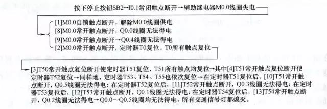 當(dāng)按下停止按鈕后,為了不讓各傳送帶上有物料堆積,要求先關(guān)閉電磁閥YV,6s后讓M1停轉(zhuǎn),M1停轉(zhuǎn)5s后讓M2停轉(zhuǎn),M2停轉(zhuǎn)4s后讓M3停轉(zhuǎn),M3停轉(zhuǎn)3s后讓M4停轉(zhuǎn)。