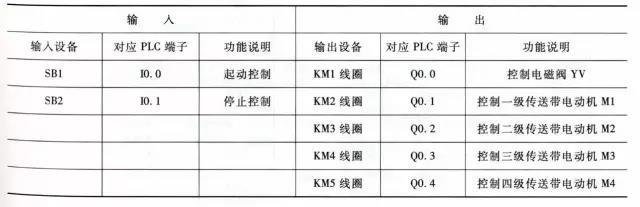多級傳送帶控制需用到的輸入/輸出設(shè)備和對應(yīng)的PLC端子見下表。