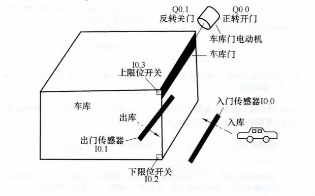 系統(tǒng)要求車庫門在車輛進(jìn)出時能自動打開關(guān)閉,車庫門控制結(jié)構(gòu)如下圖所示。
