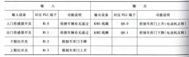 車庫自動門控制需用到的輸入/輸出設(shè)備和對應(yīng)的PLC端子見下表: