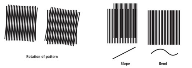 圖3.圖案的簡單旋轉(zhuǎn)增加了交叉條紋的數(shù)量(左),但由于透視角度改變到零件的部件或形狀而引起的頻率變化引入了不同的圖案(右)。