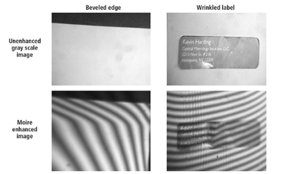 圖6.由莫爾條紋增強的斜邊(左)和皺紋標簽(右)使這兩種特征明顯,可以使用簡單的智能相機測量而無需計算3D表面。