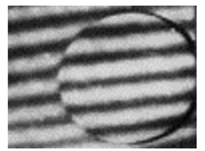 圖4.這幅圖像顯示了在一個彎曲部分上應(yīng)用的光柵的多條條紋上的莫爾條紋。在摩爾條紋圖像中,條帶對齊的變化在視覺上是明顯的。