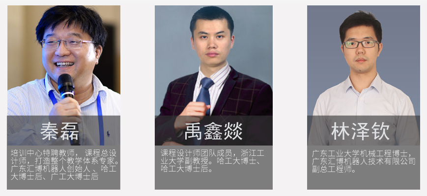 1、豪華師資,師資陣容強(qiáng)大,由哈工大博士,廣東匯博機(jī)器人創(chuàng)始人秦磊博士、浙江工業(yè)大學(xué)副教授禹鑫燚、廣東工業(yè)大學(xué)博士林澤欽等組成的教學(xué)研發(fā)團(tuán)隊(duì)。