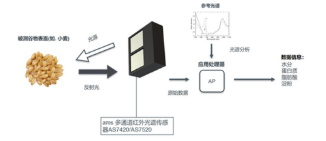 艾邁斯半導(dǎo)體對光譜傳感技術(shù)的不斷創(chuàng)新,最新研發(fā)的面向消費(fèi)類的近紅外光譜傳感器AS7520和AS7420可以覆蓋750nm~1050nm和1350~2150nm的紅外波段,可以檢測大部分的有機(jī)化合物,搭配高精度的溫度傳感器AS62XX,可以監(jiān)測糧倉中谷物質(zhì)量,通過如NB-IOT、LoRa等無線技術(shù),可以實(shí)現(xiàn)無人工,多點(diǎn),且實(shí)時的監(jiān)測,并能根據(jù)當(dāng)前的測試數(shù)據(jù)預(yù)估糧食質(zhì)量的變化趨勢。
