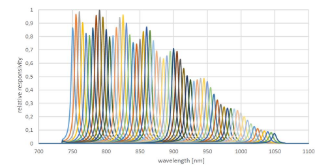 AS7520是一個基于單像素InGaAs的探測器,且?guī)V波器可調(diào)。有三組波段供選擇,1350-1650nm、1550~1850nm、1750~2150nm。帶通濾波器可以以1nm為步長進(jìn)行掃描,F(xiàn)WHM為8nm.