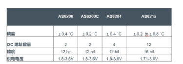 除上述的主要物質(zhì)參數(shù)外,谷倉的溫度也需要被監(jiān)測,因?yàn)闇囟仁怯绊懝任锩棺兊囊蛩刂唬梢源钆浒~斯半導(dǎo)體的高精度溫度傳感器AS62XX,最高精度可以到+/-0.2°,休眠功耗只有0.1uA,測量功耗6uA,且無需校準(zhǔn)即可準(zhǔn)確測量溫度,支持的工作溫度-40°~125°,支持多個I2C地址,大小只有1.5x1mm,還可以設(shè)置溫度門限值,超過門限值就會發(fā)出警告信號。