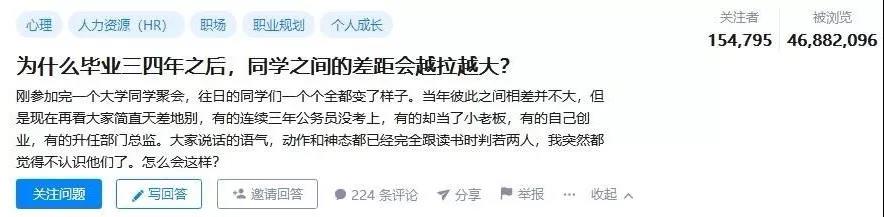 知乎有這么一個貼子“為什么畢業(yè)三四年之后,同學之間的差距會越來越大?”