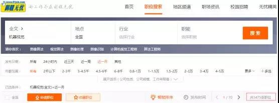 據(jù)相關(guān)數(shù)據(jù)統(tǒng)計(jì),預(yù)計(jì)到2020年僅中國的機(jī)器視覺市場(chǎng)規(guī)模就將達(dá)到70.9億元。 目前,小編僅在前程無憂統(tǒng)計(jì)到的本月機(jī)器視覺相關(guān)崗位空缺,就達(dá)到3,475人次。同時(shí),3-5年工作經(jīng)驗(yàn)以上的人才需求就占了34%!