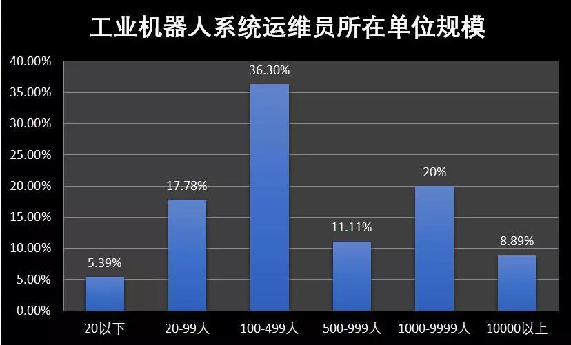 工業(yè)機(jī)器人系統(tǒng)運(yùn)維員所在企業(yè)規(guī)模分布均勻,大、中、小、微型公司都需要系統(tǒng)運(yùn)維員推動(dòng)轉(zhuǎn)型。