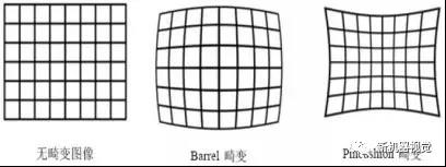 畸變:鏡頭中心區(qū)域和四周區(qū)域的放大倍數(shù)不相同。