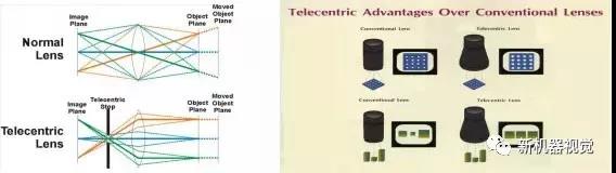 在測量系統(tǒng)中,物距常發(fā)生變化,從而使像高發(fā)生變化,所以測得的物體尺寸也發(fā)生變化,即產(chǎn)生了測量誤差;即使物距是固定的,也會(huì)因?yàn)镃CD敏感表面不易精確調(diào)整在像平面上,同樣也會(huì)產(chǎn)生測量誤差。采用遠(yuǎn)心物鏡中的像方遠(yuǎn)心物鏡可以消除物距變化帶來的測量誤差,而物方遠(yuǎn)心物鏡則可以消除CCD位置不準(zhǔn)帶來的測量誤差。