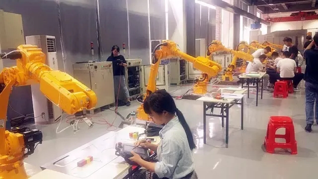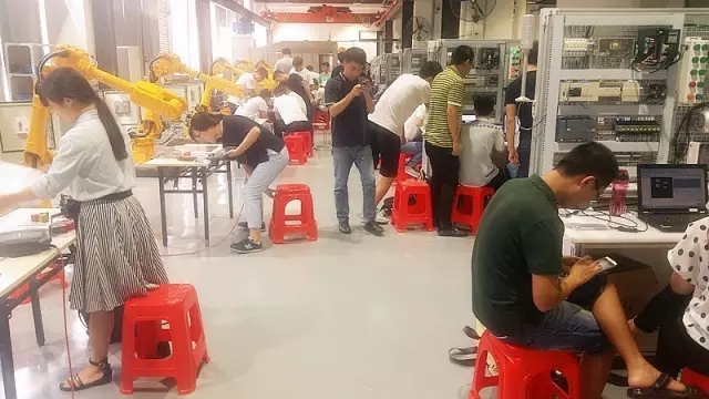 上午9點,培訓中心的范建樺老師為同學們進行了40分鐘的基礎理論講解,帶領同學們熟悉了機器人培訓的基礎流程。之后,在指導老師的安排下,同學們各自分組進行學習,熟悉工業(yè)機器人的基礎操作。