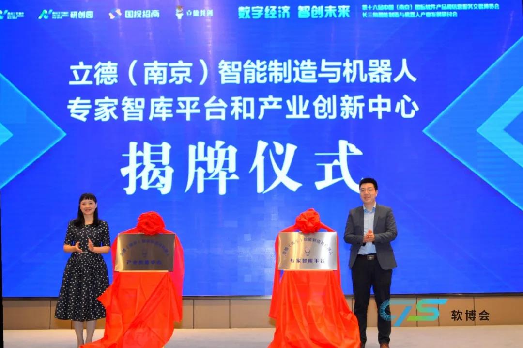在全體參會人員的見證下,南京江北新區(qū)黨工委委員、管委會副主任陳潺嵋與北京立德共創(chuàng)智能機(jī)器人科技有限公司總經(jīng)理潘月博士共同為立德(南京)智能制造與機(jī)器人專家智庫平臺與產(chǎn)業(yè)創(chuàng)新中心揭牌。