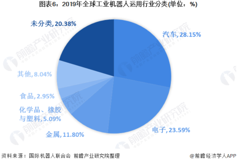 全球工業(yè)機(jī)器人運(yùn)用行業(yè)分類呈現(xiàn)逐步擴(kuò)散趨勢(shì)