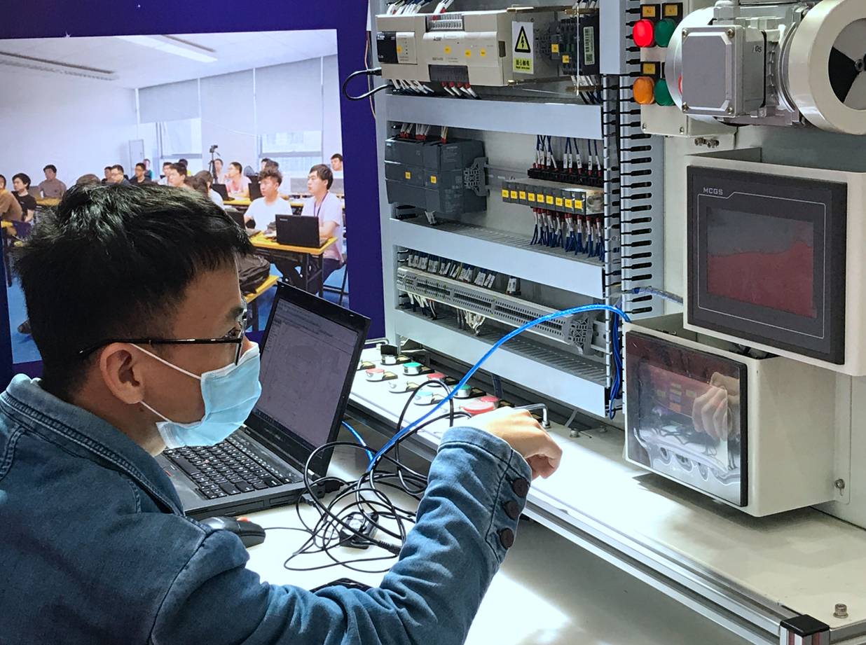 與此同時(shí),一些觀眾對(duì)犀靈機(jī)器人的PLC工控實(shí)訓(xùn)臺(tái)表現(xiàn)出濃厚的興趣,紛紛向犀靈機(jī)器人工程師詢問(wèn)該設(shè)備的功能和特性。值得一提的是,該設(shè)備與真實(shí)工業(yè)現(xiàn)場(chǎng)使用的設(shè)備基本一致,集成PLC、氣缸、三色燈、變頻器、伺服電機(jī)于一體,是犀靈機(jī)器人培養(yǎng)PLC人才的重要實(shí)訓(xùn)設(shè)備。