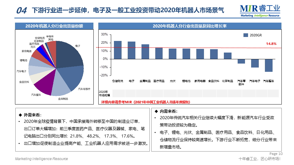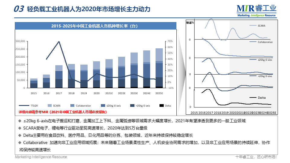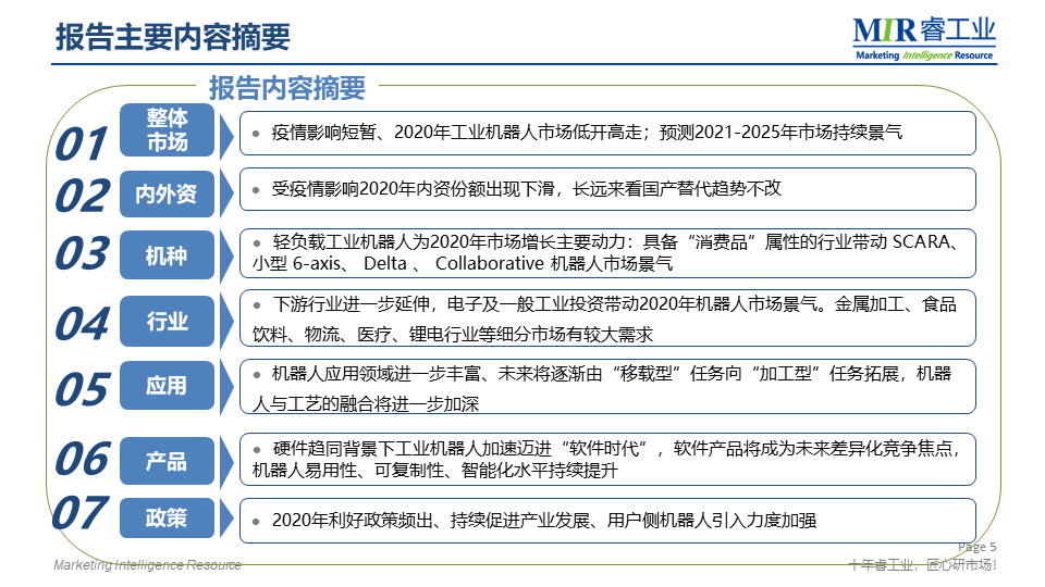 MIR 睿工業(yè)編制了《2021年中國(guó)工業(yè)機(jī)器人市場(chǎng)年度報(bào)告》,聚焦工業(yè)機(jī)器人產(chǎn)業(yè)鏈,從產(chǎn)品、行業(yè)、應(yīng)用等多方面解析2020年工業(yè)機(jī)器人市場(chǎng)變化以及未來(lái)走向。