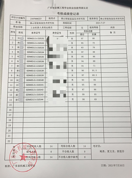 (廣東省機(jī)械工程學(xué)會(huì)職業(yè)技能等級(jí)認(rèn)證考核成績(jī)?nèi)客ㄟ^(guò))