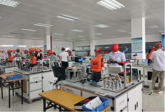 匯博機(jī)器人與犀靈機(jī)器人擁有超過(guò)2000平方米培訓(xùn)場(chǎng)地,深耕于工業(yè)機(jī)器人人才培養(yǎng),已為國(guó)內(nèi)800多家企業(yè)培養(yǎng)了5000多名工業(yè)機(jī)器人工程師,憑借自身優(yōu)勢(shì)現(xiàn)針對(duì)每個(gè)工業(yè)機(jī)器人工業(yè)機(jī)器人系統(tǒng)運(yùn)維員考證等級(jí)分別制定相應(yīng)完善的教學(xué)資源包,讓學(xué)生更快速的掌握考試知識(shí)點(diǎn),同時(shí)配備20臺(tái)考證實(shí)訓(xùn)設(shè)備,為學(xué)生高通過(guò)率考取證書(shū)保駕護(hù)航。