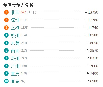 (數(shù)據(jù)顯示工業(yè)機器人工程師在北京地區(qū)工資最高,為13750元)