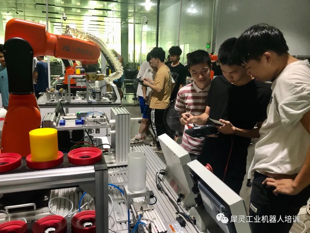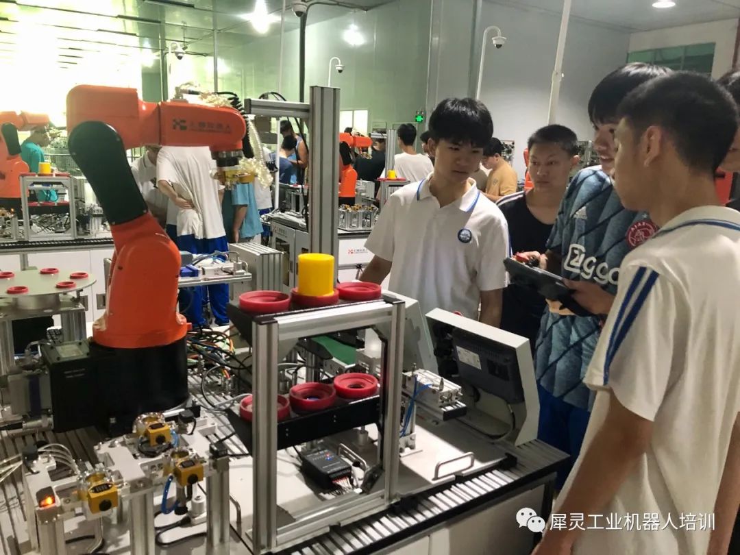 本次實訓共有35名廣州白云行知職業(yè)技術(shù)學校機器人專業(yè)同學參加,在班主任王老師帶領下,同學們從廣州來到佛山犀靈機器人培訓中心參加線下實訓及考證。犀靈機器人為本次實訓的同學們帶來了精彩且充實的課程,進一步提升同學們的工程實踐能力和就業(yè)競爭力,為將來踏入工業(yè)機器人行業(yè)打造堅實的基礎。