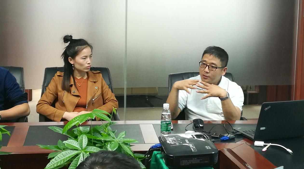 (廣州橘子電氣有限公司的嚴先生向?qū)W員們介紹企業(yè)概況)