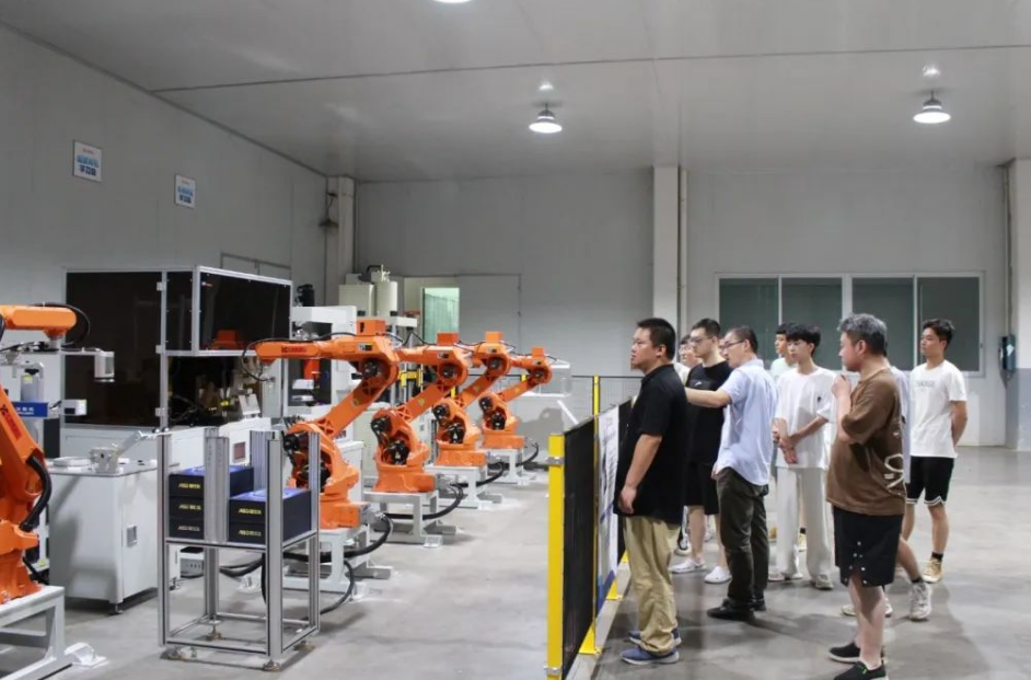 開班儀式后,劉老師帶領(lǐng)學(xué)員們參觀了犀靈機(jī)器人實(shí)訓(xùn)中心的工業(yè)自動(dòng)生產(chǎn)線,讓他們近距離接觸真實(shí)的自動(dòng)化設(shè)備。劉老師耐心細(xì)致地講解,學(xué)員們聚精會神地傾聽。犀靈機(jī)器人實(shí)訓(xùn)中心擁有超過2000平米的建筑面積和一百多臺專業(yè)設(shè)備,包括ABB機(jī)器人、三菱PLC、西門子PLC工控臺、氣動(dòng)板、機(jī)器人打磨工作站等。
