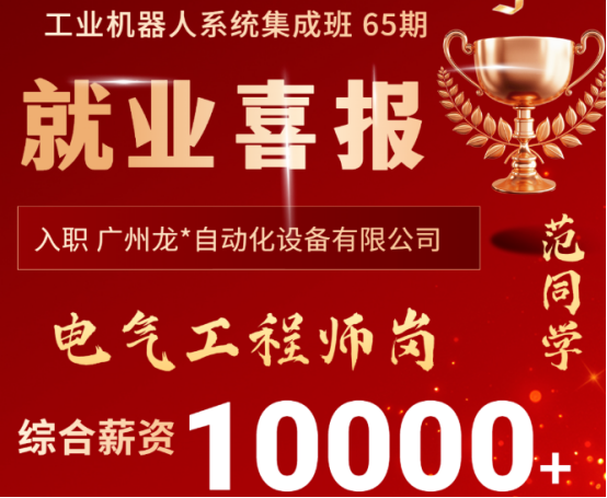 2023年初,他選擇犀靈機器人培訓(xùn)中心學(xué)習(xí)電氣自動化課程,留校2個月,于7月19日成功入職一家年銷售額4億的集成商,月薪8K(未含績效等補貼提成),14薪。