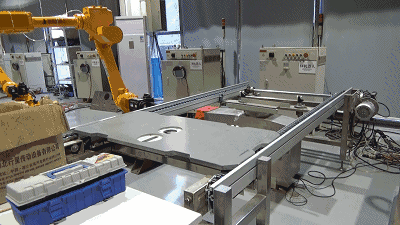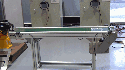 與兩臺機(jī)器人實(shí)現(xiàn)聯(lián)動的流水線▼