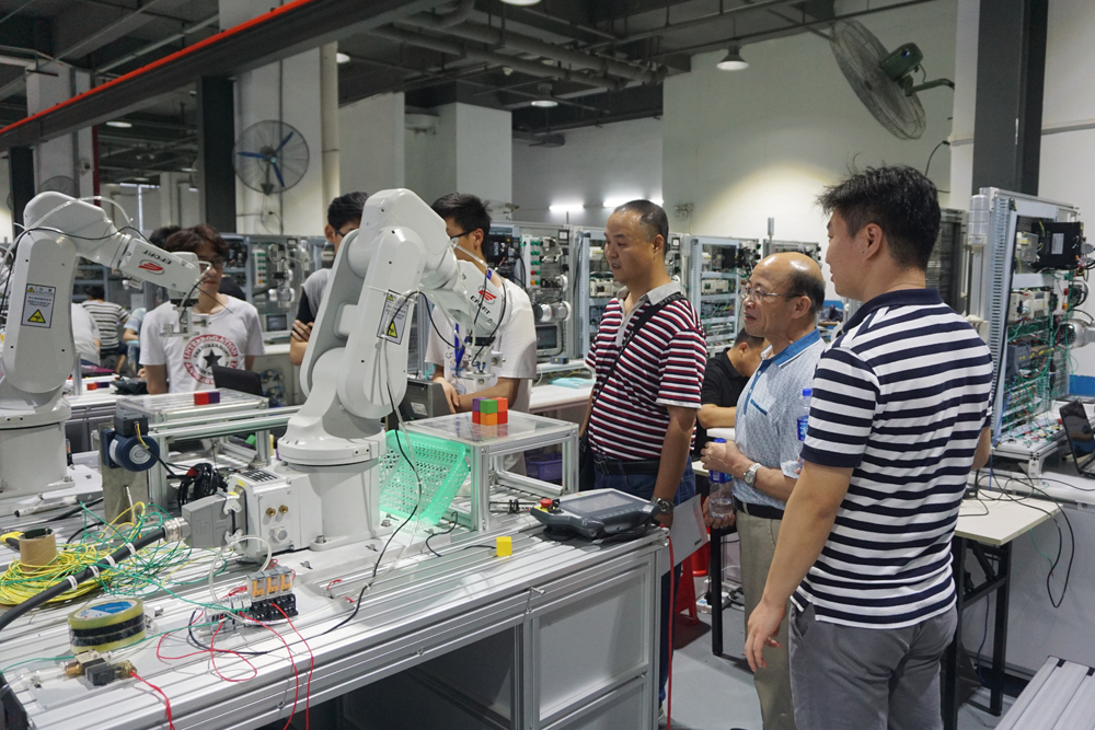 伍主任當天還參觀了犀靈機器人中心實操教室,對犀靈機器人課程緊緊圍繞職業(yè)崗位對應的知識、能力和技能的要求,不斷改革傳統(tǒng)的教學內(nèi)容與模式,突出實踐性教學,注重課程的實用性、先進性、綜合化、模塊化和層次化,建立以能力為本的課程體系并不斷升級新的課程給予高度認可和贊譽。
