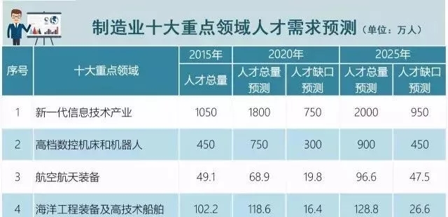 ▲制造業(yè)十大重點領(lǐng)域人才需求預測(截取部分數(shù)據(jù))